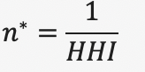 Una vez calculado el Índice de Herfindahl-Hirschman, éste sirve para calcular lo que se denomina Número Equivalente, que muestra el número de empresas de igual tamaño que daría lugar a una industria con un HHI determinado.