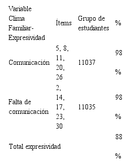 Entre otro de los factores que se analizó en esta investigación es la variable expresividad en las relaciones intrafamiliares, determinando el grado de comunicación y la frecuencia con que se presenta la falta de comunicación en los sujetos encuestados.