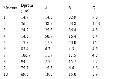 Una vez obtenidos los diámetros equivalentes de cada agregado para cada una de las muestras de petróleo crudo, se utilizó el software estadístico Statgraphics Centurion XVI en su modo de análisis de distribución, con lo que se estableció el tipo de distribución estadística ajustada a las características de distribución de frecuencia de los agregados, así como el valor del diámetro promedio para cada muestra.