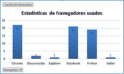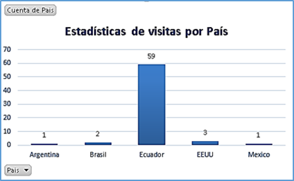 Como se mencionó anteriormente, la idea de este ejercicio fue hacer que los usuarios ingresen a un Blog Personal, el mismo que estaba “contaminado” con un componente contador de visitas, por medio del cual se pudo obtener información no consentida, como la que se muestra en los gráficos de abajo. Así, 66 personas visitaron el Blog Personal implementado, y además de Ecuador, se registraron visitas de otros países como: Argentina, México, Brasil y Estados Unidos. Véase Figura 7.