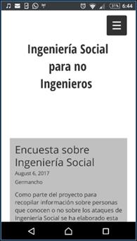 Este estudió presentó una propuesta para incentivar el aprendizaje relacionado a la Ingeniería Social, el cual se basó en un ataque controlado, ejecutado a través de un blog, al que se llegó mediante Facebook y WhatsApp. En este Blog se instaló un complemento oculto, para recolectar información sensible acerca de los visitantes.