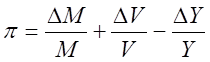 De allí, que a partir de las ecuaciones 1, 2 y 3 Mochón (2008, pág. 221) señale que las ecuaciones más frecuentemente utilizadas por las autoridades como referentes para controlar la inflación mediante el seguimiento y supervisión del crecimiento de la cantidad de dinero u oferta monetaria sean: