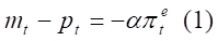 Donde α > 0 dado que la tasa de interés nominal es la tasa de interés real más la inflación esperada (Fisher y Brown (2007[1911])[1],
