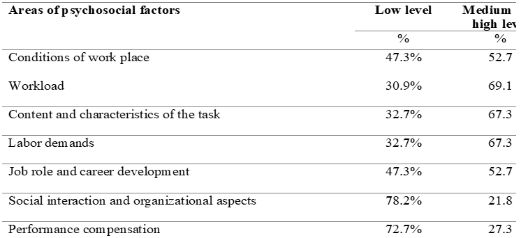 As Oramas (2013) says, psychosocial factors are analyzed because they are a variable related to "psychic life and the conditions under which activity takes place" and to work stress because it is a variable that "expresses a quality, is subjective and is related between the individual and his environment ".