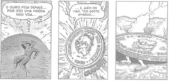 Aqui, já sabemos que não se trata do mesmo tipo de voz que falava no começo do Prólogo, graças a todo o processo de construção gradual do Prólogo e dos dois primeiros quadrinhos da primeira parte. O narrador não se limita a anunciar a mudança, ele a mostra na prática ao leitor. O gênero discursivo escolhido, pois, assim o permite, como será abordado adiante.