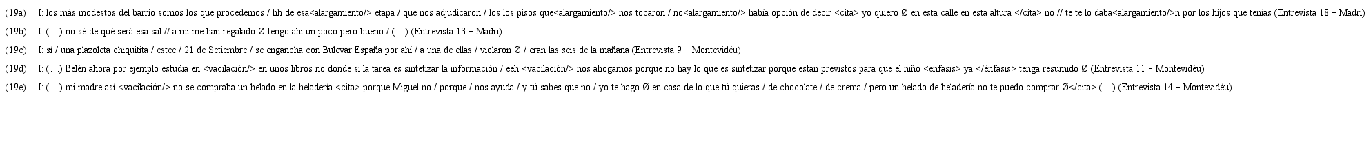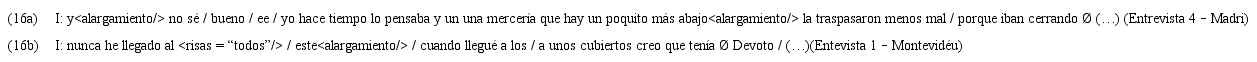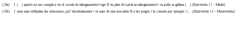 Analisamos 18 entrevistas da variedade de espanhol de Madri (Cestero Mancera et al., 2012) e 20 entrevistas da variedade de Montevidéu (Elizaincín, s/d), pertencentes ao PRESEEA6.