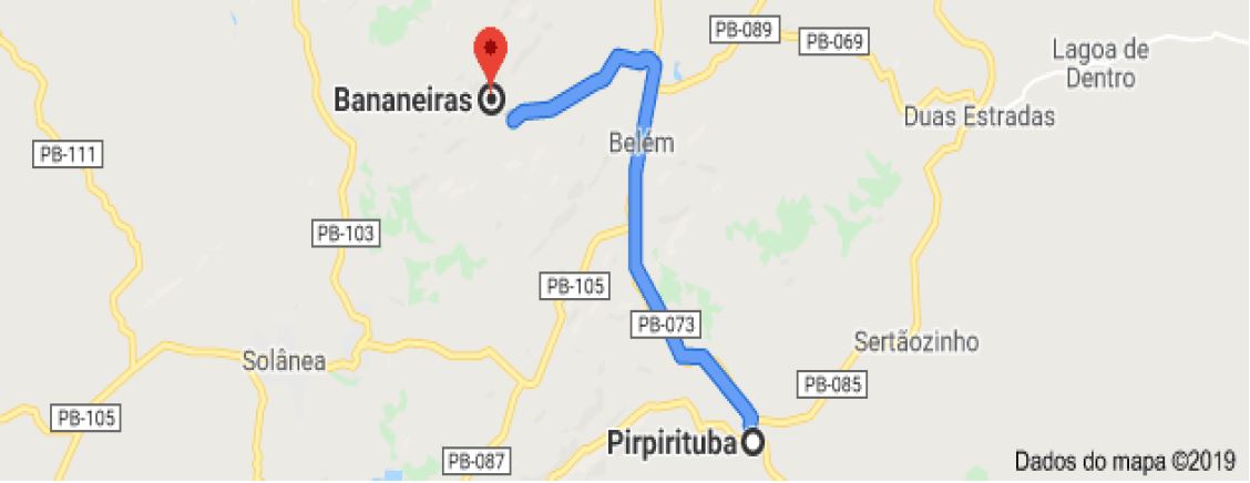 Da parte da direção do CCHSA, foi essencial o apoio, por meio do fornecimento de transportes e motoristas, para o deslocamento até as escolas rurais. Não se pode deixar de citar como foi difícil o acesso geográfico/territorial a essas instituições, principalmente porque ocorreram nos meses de inverno. Saliente-se que a distância entre esse campus, situado em Bananeiras-PB, e as escolas, situadas em Pirpirituba-PB, é de 21,3 quilômetros (ver ilustração 2).