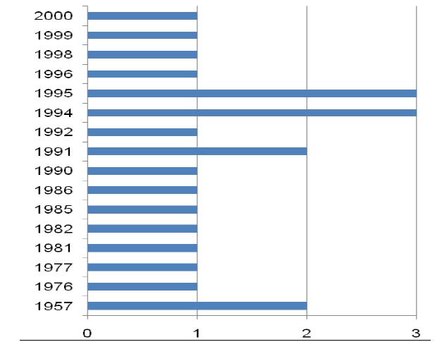 Os anos de nascimento das/dos respondentes (Gráfico 2) mostram uma larga faixa etária entre aquelas/es que se evadiram da graduação em Musicoterapia da Unespar. As/Os respondentes apresentavam idades entre 18 e 61 anos, dados que também dialogam com as faixas etárias presentes no corpo discente do curso e turmas com bastante diversidade etária.