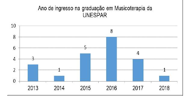 Com relação às questões de evasão escolar na Unespar, é necessário refletir sobre o baixo número de ingressantes e egressas/os da graduação em Musicoterapia da instituição. Nos anos de 2017 e 2018, a título de exemplificação, houve apenas nove egressas/os, seis destes em 2017 e apenas três em 2018. Vale destacar que tanto a turma de 2017, com ingresso em 2013, quanto a turma de 2018, com ingresso em 2014, possuíam 30 vagas nos processos seletivos de vestibular, mas ainda contavam com o THE. Em 2013, ingressaram 19 estudantes e, em 2014, apenas 11. O cenário mudou positivamente em 2015, com a entrada de 30 discentes, quando da adesão da universidade ao Sisu.