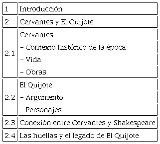Elección del tema. El tema del proyecto gira en torno a El Quijote y Miguel de Cervantes, debido a la conmemoración, durante el curso 2015/2016, del cuarto aniversario de la muerte del autor. Este acontecimiento va a suponer el eje vertebrador de un proyecto que va a recoger no solo el conocimiento del autor y la obra, sino también otros aspectos, como el contexto histórico o la relación con otros autores universales. Todo ello permitirá diseñar un proyecto integrador y globalizado partiendo del texto adaptado a LF.