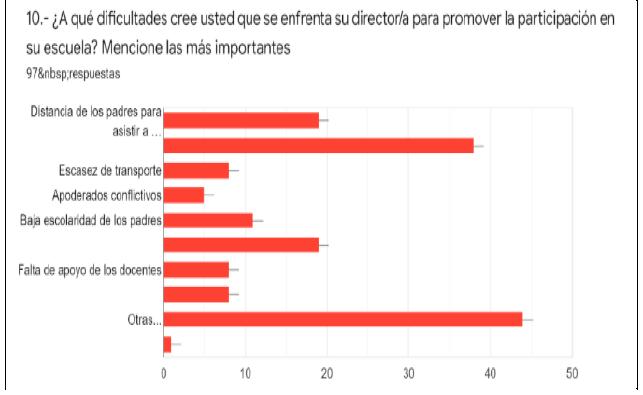 Essas abordagens nos permitem reafirmar que a liderança exercida pelos diretores dentro das escolas é fundamental, pois sua ênfase deve ser colocada no aprendizado, portanto deve ter um caráter: “[...] pedagógico que guie o trabalho da escola com uma visão de futuro, dentro de um marco de ação ética, gerando espaços de confiança e participação, em um ambiente que garanta o respeito e a inclusão da comunidade” (MINEDUC, 2015, p. 9). Também é imperativo destacar a necessidade de fortalecer a participação dos pais nas escolas com foco preferencial e intencionalidade nos aspectos formativos que contribuem para melhorar o aprendizado de seus filhos.