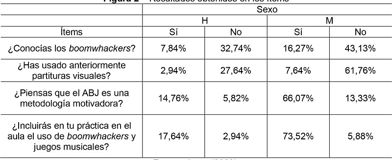 Es altamente relevante que más del 90% de la población piensa usar en su futuro docente el ABJ y los tubos sonoros en el aula de música de educación primaria.