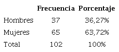 En la Tabla 1, se presenta la frecuencia de participación por sexos, mientras que la edad de los participantes estuvo comprendida entre los 18 y 25 años.
