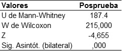 La tabla 5 nos permite observar que el valor de U M-W = 187,400 y el valor de la sig. (?) = 0.000, por lo que se asume la hipótesis alterna y se rechaza la hipótesis nula, y al tener la certeza de que la única diferencia entre ambos grupos es el plan de intervención, podemos afirmar que, el modelo didáctico del profesor desarrolla óptimamente la formación científica y el aprendizaje de la lectura de estudio en los estudiantes universitarios de pregrado.