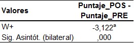 Ha: Los puntajes obtenidos en pre y posprueba que mide la formación científica son significativamente diferentes.