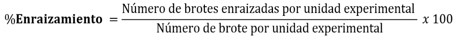 Porcentaje de Enraizamiento. Al final del experimento, se realizó un recuento de los brotes enraizados. Se consideró un brote enraizado a aquel que presentó al menos una raíz de 5 milímetros o más de longitud (SANTELICES, 1998). Además se consideró la categoría de enraizamiento según lo propuesto por Del Río y Caballero (2005).