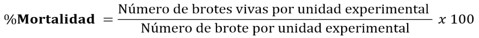 Los datos para estos dos últimos parámetros (porcentaje de enraizamiento y porcentaje de mortalidad) fueron transformados mediante la fórmula de arcsen ? (%); donde el (%) es igual al porcentaje de mortandad.