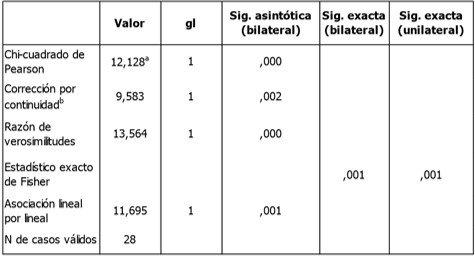 a. 0 casillas (0,0%) tienen una frecuencia esperada inferior a 5. La frecuencia mínima esperada es 5,50.