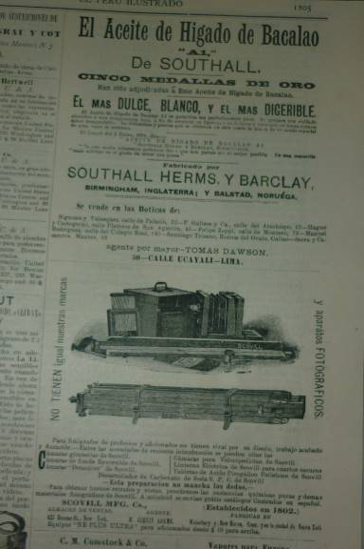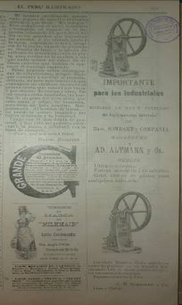 Por esta razón, la oscilación de la modernidad y el consumo desplegaron una cosmovisión de progreso. A su vez, la prensa propaga ilustraciones de diversa índole que son complementadas con auspicios obtenidos por el establecimiento Bacigalupi, donde se encontraban jarabes, remedios, billetes de lotería, cámaras fotográficas, remedios, motores automovilísticos, armamentística, instrumentos musicales, citas amorosas, etc. Esa importación se revela como una oportunidad para que el consumismo sea accesible y no excluya tipo de personas. En ese sentido, se cumple una de las inferencias que argumentó Luz Ainai Morales Pino (2015, p. 166), al sostener que El Perú Ilustrado tiene una pretensión de homoge-neizar la sociedad, merced a que se instala un imaginario social desligado de los problemas coetáneos y que, a la vez, desea erigir una identidad del país sobre la base del consumo de objetos trasnacionales.