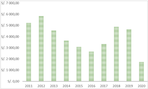 En el periodo fiscal 2012, se presenta un incremen-to sustancial en la transferencia de estos gravámenes a las diversas regiones del país, decayendo considerablemente en el periodo 2016, por la coyuntura política, que generó inestabilidad en ese entonces, hasta el 2018 se mejora esta recaudación; ahora con motivo de la pandemia se espera que las transferencias no se contraigan.