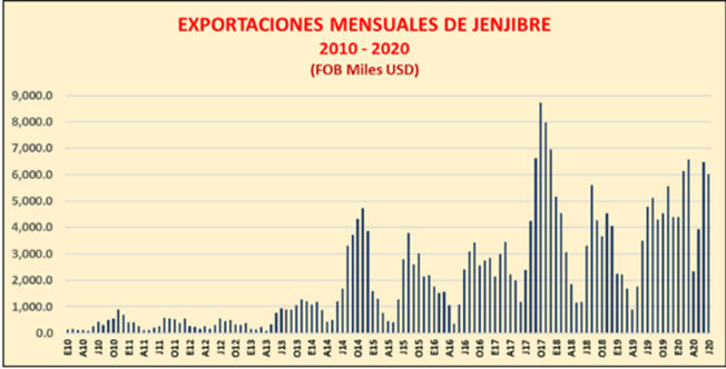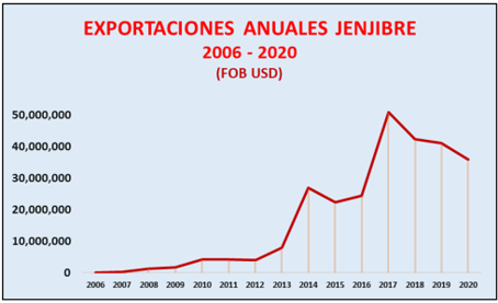 Gráfica 1Exportaciones de jengibre 2006 - 2020