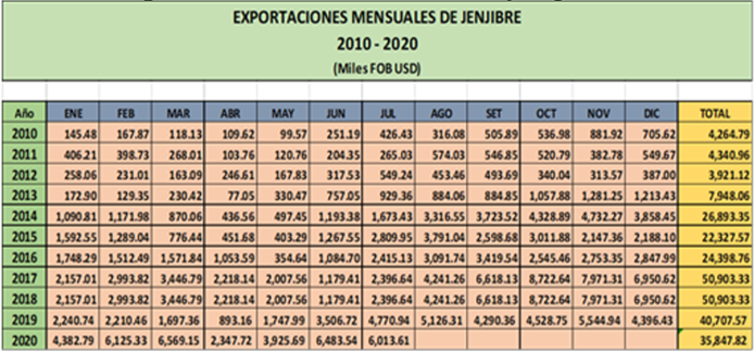 Estudio del desempeño de las exportaciones del jengibre entre 2010 y 2019