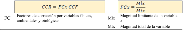 La capacidad de carga que se ajusta al trabajo es la CCR para cálculo Capacidad de la Acogida Turísti-ca Multicriterio, que presentamos a continuación.