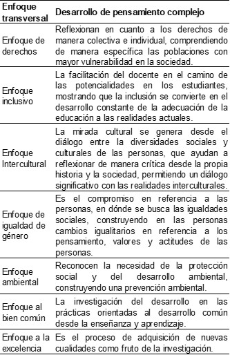 En la tabla 1 se presentan enfoques transversales diseñados para fomentar el pensamiento complejo. Aunque no emplean directamente la palabra "complejo", su finalidad es cultivar la complejidad a través de sus objetivos.