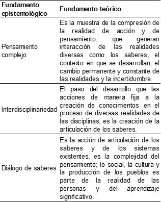 En la tabla 2, se observa que los fundamentos epistemológicos incluyen tres pilares fundamentales: complejidad, interdisciplinariedad y diálogo de saberes. Estos elementos propician el desarrollo y la mejora del conocimiento en los estudiantes, partiendo de una base epistemológica sólida.