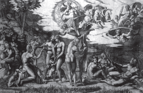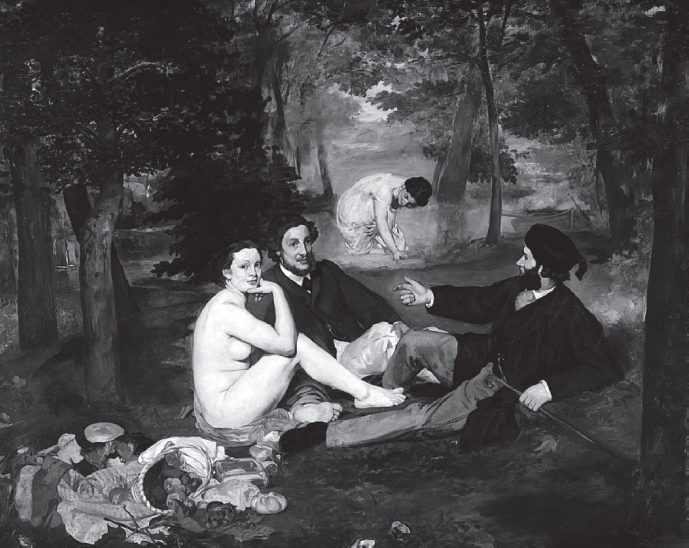 Ainda há mais: para Warburg as Pathosformeln não seriam estagnadas culturalmente, elas integrariam os desenvolvimentos culturais, embora, a partir do marco moderno do Renascimento, com o primado filosófico da Razão, elas começassem a ser edulcoradas, como é possível perceber ao longo do Renascimento e entre o Barroco e o século XiX. Warburg chegou a comentar como, na era industrial, ela pôde reaparecer, como em Le Déjeuner sur l’herbe (f. 9) de Édouard Manet (EFAL, 2001, p. 223-224), reportando-a ao grupo do canto inferior direito de uma obra de Raffaello, o Julgamento de Paris, que nos é conhecida por meio da gravura de Marcantonio Raimondi no século XVI (f. 10), que parece reportar a imagens bem mais antigas, como um relevo helenístico do século III AD na Villa Medici, em Roma (f. 11).