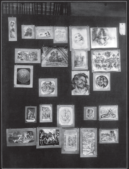 Em 1926, a Biblioteca deixaria a residência de Warburg para ocupar um edifício próprio, ainda em Hamburgo. Mas desde sua formação, quatro décadas antes, sua organização se contrapunha à compartimentação dos saberes que desde o século XIX, com a formação de grandes bibliotecas públicas na europa, se tornara tradicional (Settis, 2000, p. 114-116). A organização da KBW era regida pelo que ele chamou de Gesetz der guten Nachbarschaft (lei da boa vizinhança), em que os livros eram aproximados não pelas divisões disciplinares, mas pelas afinidades de seus conteúdos e imagens, em função das pesquisas de Warburg. uma lógica homóloga passou a reger os conjuntos de grandes pranchas, com um metro de altura, forradas de tecido preto em que Warburg associava imagens de toda a história da arte por meio de reproduções fotográficas em seu mapa ou atlas de imagens da memória. Mas, além de reproduções de obras de arte, mapas terrestres, celestes e astrológicos, desenhos científicos e até páginas de jornal com fotografias podiam figurar entre as imagens escolhidas, em seu inventário de imagens antiquizantes. A cada prancha do Bilderatlas correspondiam breves referências escritas que sintetizavam o princípio de cada jogo de associação imagética. Mais que isso, da potência heurística inerente à KBW toda uma reorganização de saberes permitia nessa transdisciplinaridade deslocamentos epistemológicos preocupados com a relação entre formas e símbolos, ou seja, com o nexo forma/conteúdo (Pugliese, 2011, p. 4).