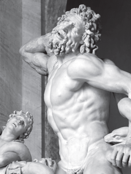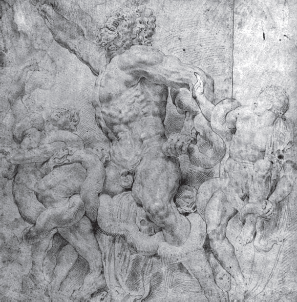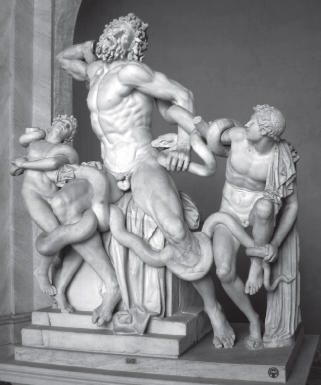 Este artigo se abre com uma imagem sobredeterminada: o Laocoonte (f. 1), grupo escultórico que data do final do chamado Período Helenístico. Sua descoberta, no Foro de Tito em Roma, em 1506, parece ter afetado os rumos da escultura renascentista, em especial de Michelangelo Buonarroti (1475-1564), que a reconheceu a partir do comentário de Plinio senior (23-79) (Nat. 36, 31). esta descoberta causou uma intensa repercussão entre os renascentistas e os maneiristas, além de impactar a própria história da arte, pois a obra impunha rever conceitos da Antiguidade, em épocas posteriores. A terrível serpente marinha, enviada por Poseidón para punir o sacerdote troiano capaz de prever o artifício micênico que permitiria vencer a guerra contra Ílion, Tróia, é retratada num momento decisivo – que Johann Joachim Winckelmann (1717-68) denominou «momento propício» (Winckelmann, 1975, p. 55-56) –, como ameaça iminente à vida de Laocoonte e seus filhos, que em seguida pereceriam. A obra colocava em jogo tanto os recursos das qualidades da linguagem escultórica antiga que os renascentistas conheciam, quanto os conceitos de beleza, ordem racional, perfeita proporção, objetividade, economia, harmonia e equilíbrio, associadas à estética clássica.