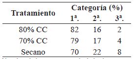 Se utilizó como información base los resultados sobre el rendimiento del cultivo ante diferentes condiciones de aseguramiento de agua, así como su composición por calidades según la norma NC 7726:12 (2012), obtenidos en condiciones experimentales (Bonet, 2016). En las Tablas 1 y 2 se reflejan los resultados.