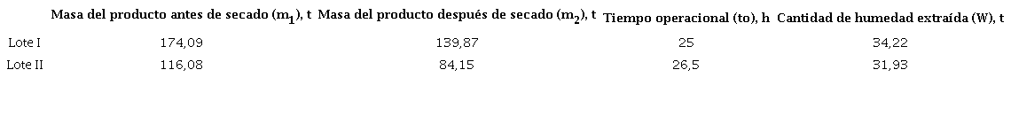 donde: m1- masa del producto antes de secado, kg; wi- contenido de humedad inicial del producto, % y wi- contenido de humedad final del producto, %.