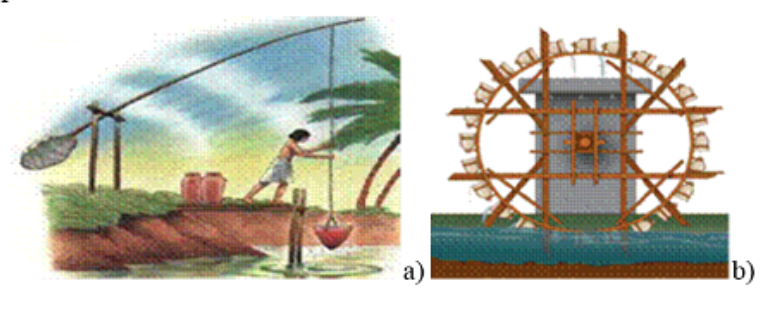 Esto se puede ver con otros dispositivos de elevación de agua inventados por los egipcios, la rueda hidráulica con ollas adjuntas, según la describen Yannopoulos et al. (2015) en su artículo, está conformada con compartimentos de agua y una cadena de cangilones (recipientes usados para el transporte de agua), que se ejecuta sobre una polea con cubos unidos a ella. También dichos autores afirman que el Shaduf egipcio junto con la rueda de agua, llamada también noria según se muestra en la Figura 1b , se encuentran probablemente entre los primeros dispositivos para elevar el agua y es fundamental de destacar, que se utilizaban para el riego y el suministro de agua doméstica en la época.