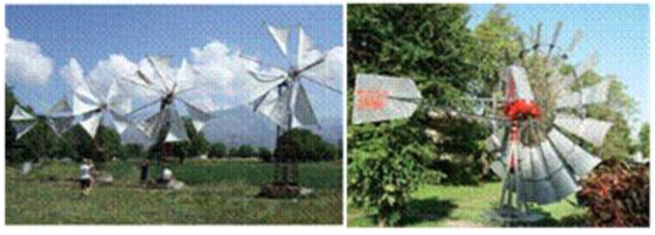 Según Hajj (2015), los molinos de viento tradicionales se han utilizado durante siglos como se argumenta en los párrafos anteriores. En la actualidad las bombas de baja potencia accionadas por molinos de viento son la aplicación mecánica más frecuente de la energía eólica para el bombeo de agua. Esta aplicación demanda un alto par de arranque y una baja velocidad específica de viento, por lo que se conoce como un “sistema eólico lento”; se usan fundamentalmente en áreas aisladas de la red eléctrica de acuerdo con lo planteado por Yannopoulos et al. (2015), Figura 3.