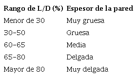 Las características geométricas y mecánicas de las células de fibras son determinantes de las propiedades globales de los tallos; Leonard et al. (1988), asociaron el coeficiente de flexibilidad de los tallos con las dimensiones de las fibras (diámetro, espesor de la pared celular y lumen). En la Tabla 2 se observa la clasificación de las fibras con base en las recomendaciones de Tomolang y Wangaard (1961), que con valores medios del coeficiente de flexibilidad (en porcentaje) clasifican las fibras en cinco categorías (muy gruesa, gruesa, media, delgada y muy delgada).