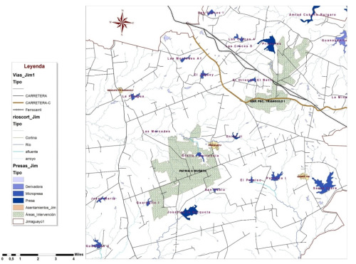 El municipio Jimaguayú cuenta con fuentes de agua superficial y subterránea; el agua superficial representada por una red que incluye 4 presas y 16 micropresas distribuidas por todo el territorio (Figura 2).