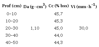 El suelo predominante en la finca “El Semillero” de la Empresa de Agropecuaria “Laguna Blanca”, se clasifica como Fersialitico Pardo rojizo según Hernández et al. (1975, 1999) y las propiedades hidrofísicas disponibles fueron tomadas de los estudios realizados por el Departamento de Suelos de la Delegación Provincial de la Agricultura (Minag-Cuba, 2010) (Tabla 2).