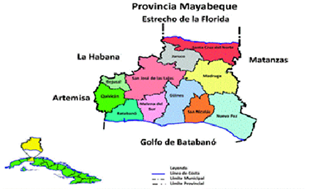 La Universidad Agraria de La Habana (UNAH) se encuentra ubicada en la Provincia de Mayabeque en Cuba, la cual tiene una economía de carácter agro-industrial con grandes potencialidades en el sector agropecuario. En esta provincia se encuentra el segundo mayor complejo científico del país y el primero especializado en el sector agropecuario, el cual está integrado por la UNAH y tres centros de investigación el Instituto de Ciencia Animal, Centro Nacional de Sanidad Agropecuario y el Instituto Nacional de Ciencias Agropecuarias. Además, la provincia cuenta con una Dirección Provincial de la Agricultura estructurada en 11 direcciones municipales ubicadas en cada uno de los territorios de la provincia (Figura 1).