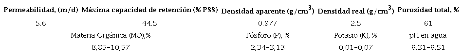 Previamente se realizó el estudio del sustrato utilizado. Este fue una biotierra, enriquecida con estiércol vacuno, cuyas propiedades iniciales se corresponden a los rangos indicados a continuación (Tabla 2).