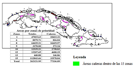 Se determinaron las áreas cañeras de las empresas, que por su ubicación geográfica están dentro de las 15 zonas vinculadas al programa de enfrentamiento al cambio climático, Tarea Vida, y por lo tanto llevan una atención especial para prevenir posibles afectaciones, sobre todo al recurso suelo (Figura 6).