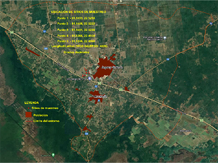 La Figura 1 muestra la ubicación de sitios evaluados en las inmediaciones de Jagüey Grande, en una zona de abundante actividad agropecuaria favorecida por la existencia de suelos que, por lo general, presentan buena aptitud agroproductiva.