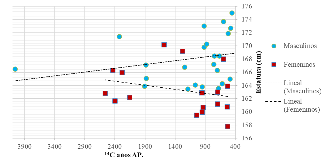 Es sugerente pensar que las diferencias en la estatura entre individuos de ambos sexos, y dentro de los mismos sexos, en dos momentos temporales que coinciden con cambios climáticos marcados, pueden estar relacionados en algún punto, por ejemplo, con la relación que existe entre las condiciones climáticas y la distribución de recursos potencialmente consumibles. Este tipo de procesos podrían explicar en parte los cambios ocurridos en la talla, pero aun así habría que evaluar otros factores, como son los procesos socioeconómicos y los cambios en el acervo genético de las poblaciones.