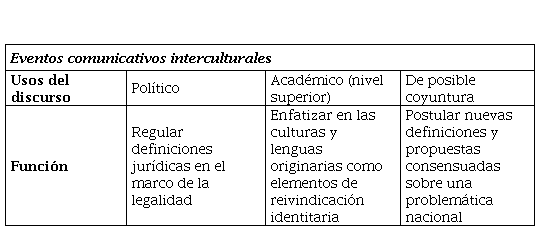 Como puede observarse, se postulan tres tipos de encuentros interculturales: político, académico y de posible coyuntura.