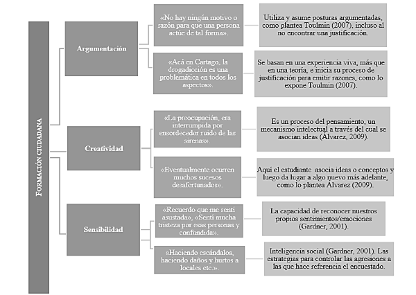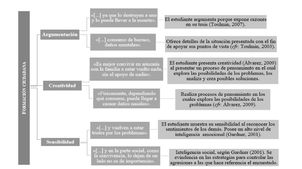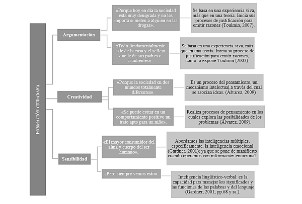 Justamente, ello es lo que se pretendió con este proceso de intervención de aula: interpretar y describir cómo los procesos formativos en artística, direccionados intencionalmente en pos del desarrollo de tales habilidades, contribuía a la formación ciudadana.