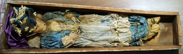 Cuerpo momificado de Candelario Plascencia Días. Galería de momias en Zapopan, Guadalajara