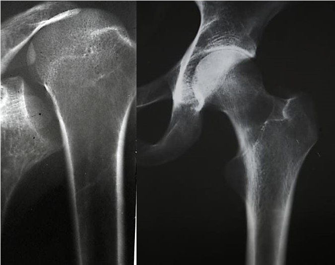 2. La estructura esponjosa del húmero y del fémur (Acsádi y Nemeskéri, citado por Herrmann et al., 1990, en Krenzer, 2006: 55-57). Para este caso se pueden utilizar radiografías, tomografías computarizadas o cortes verticales de huesos secos. El método se basa en la evaluación de cambios trabeculares en la cavidad medular en seis etapas, que describen las diferencias en la estructura esponjosa de ambos huesos.