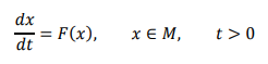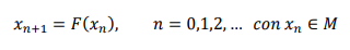 𝐹 es una aplicación del espacio de estados en él mismo 𝐹: 𝑀 → 𝑀 y esto ocurre gracias a la llamada ley de evolución del sistema o ley de transición de estados. El conjunto 𝑀 generalmente es una vecindad diferenciable (Montealegre, Londoño y Polanía, 2002).