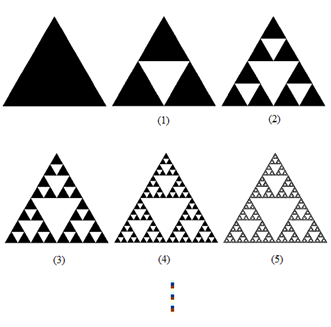 El triángulo de Sierpinski: Creado por Waclaw Sierpinski. Es análogo al conjunto de Cantor, y se obtiene por una sucesión infinita de extracciones; esto es:
